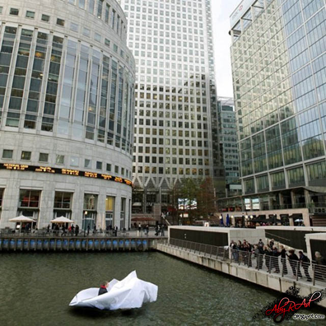 Bersempena dengan pameran 'Drift 10' di London pada Januari lepas, Frank Bolter yang berasal dari Jerman berlayar di bawah Thames dengan kapal kertas gergasinya. Kapal kertas ni diperkukuhkan dengan rangka logam bagi mengelakkan si Frank ni mati kelemasan.. kreatif beb...